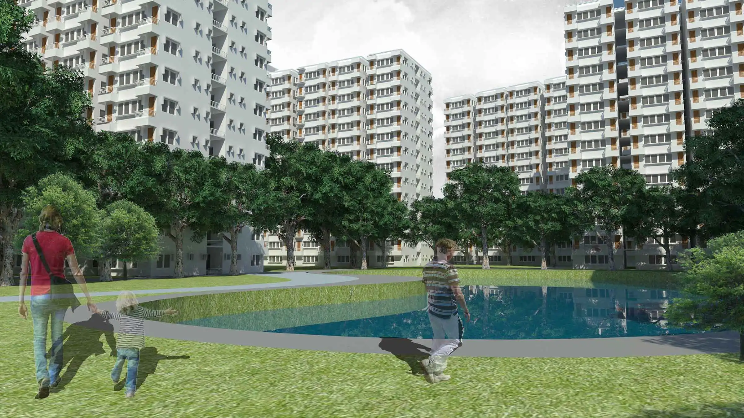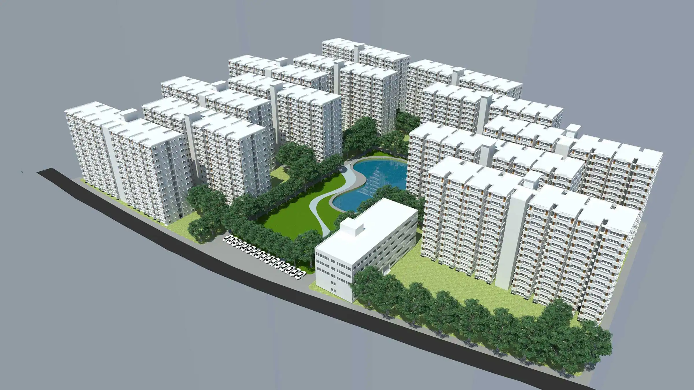Client: National Housing Association The aim of this project is to establish sustainable housing for low-income individuals. The 12 buildings house approximately 2688 units, accommodating around 13,440 residents. Ensuring proper natural lighting, wind circulation, pedestrian access, and daily amenities is crucial to support this large population. Various options have been analyzed through a comparative assessment of the housing master plan based on standard parameters. Given the project's location in Chattogram, a meticulous observation of the seven-day weather report and precise monitoring of wind speed and direction at different times and days have been conducted. This detailed analysis aims to guarantee adequate natural ventilation, eliminating the risk of suffocation. Additionally, shadow analysis has been performed to ensure proper natural lighting. From a functional perspective, each of the 14-storey buildings consists of 224 units, each featuring two bedrooms, a toilet, a kitchen, and an attached living-dining room measuring approximately 574 sqft. Complementary amenities such as a training center, primary schools, shops, and a prayer hall are also incorporated. Wind simulation indicates that the major wind circulation zones in Chittagong are South-West, South, and South-East, with varying directions and velocities over time. Consideration of both velocity and surface pressure ensures comprehensive planning for optimal wind conditions.