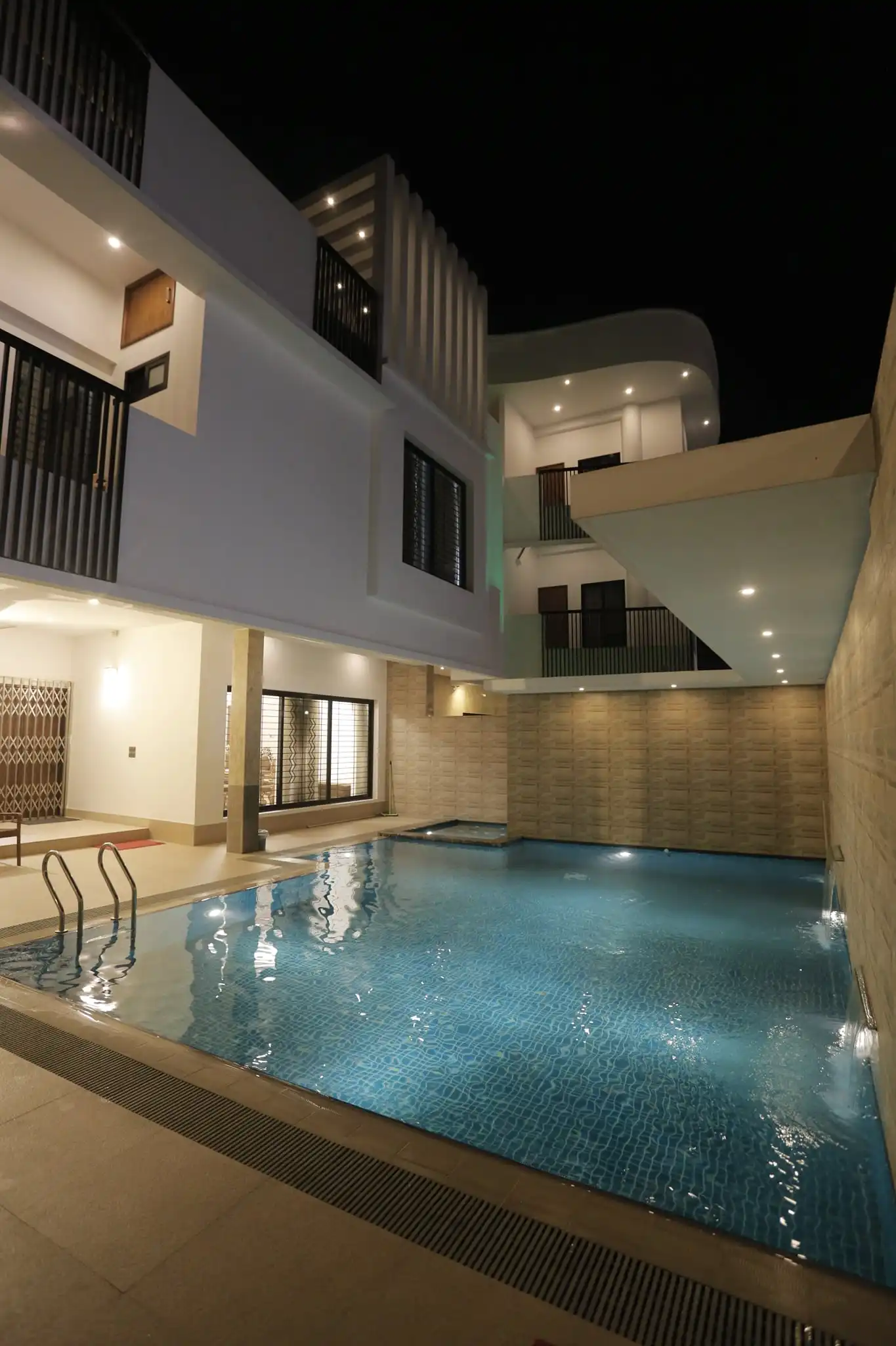 Client: K. K. Properties Ltd. This is a 3 storied beautifully landscaped single residential building. A beautifully landscaped garden along with a swimming pool is situated on the ground area. Inside there are foyer space, living room, dinning area, gym and service area. On the first floor there are four bedrooms, maid room, kitch, tv room, study room, dining+ family living area which is connect to the service zone. The third floor includes 3 bedrooms, family living and kitchen.